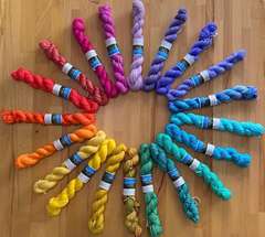 These gorgeous hand dyed yarns are so lovely and soft. Choose from Mini Skeins (80% Merino / 20% Nylon) or 4ply (100gram - Merino & Silk), just click on our Yarn/Wool dropdown and click Woodgreen dropdown. More colours arriving soon!